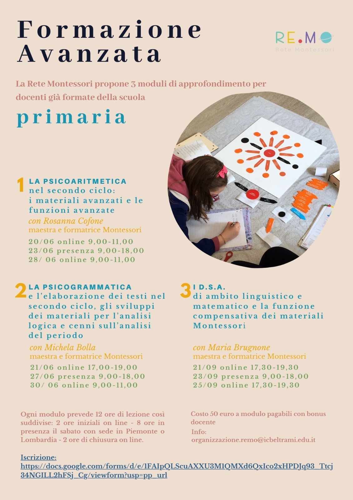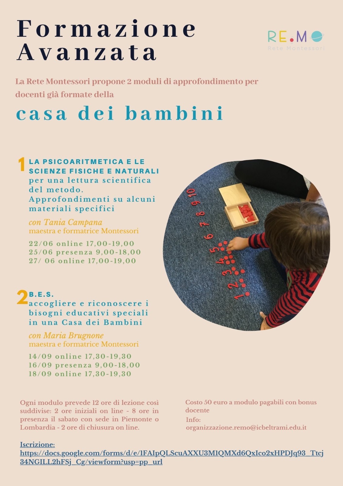Re.Mo. è l'acronimo di Rete Montessori, associazione di scuole per supportare e mettere in coordinamento il lavoro degli insegnanti per l'introduzione dell'indirizzo metodologico montessoriano nelle scuole pubbliche